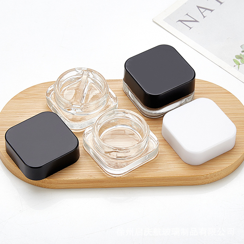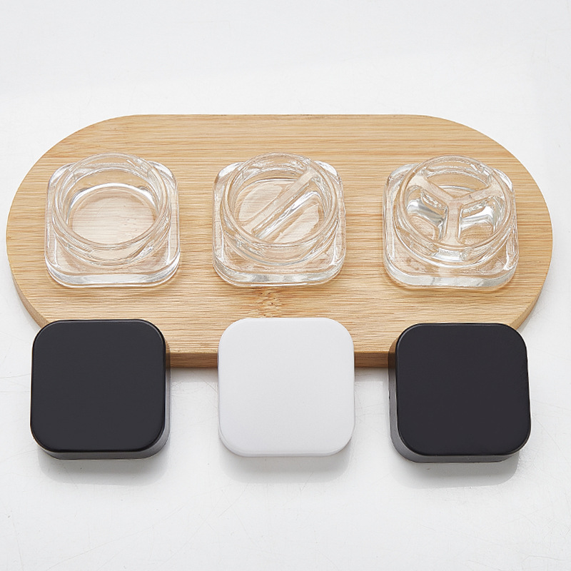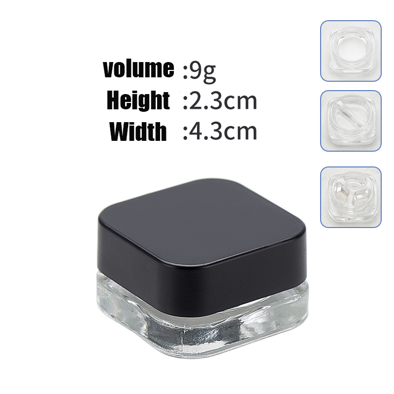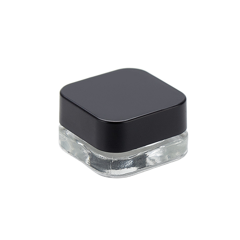 5ml Cube (Qube) Child Resistant Clear Glass Jar with Black Cap